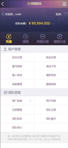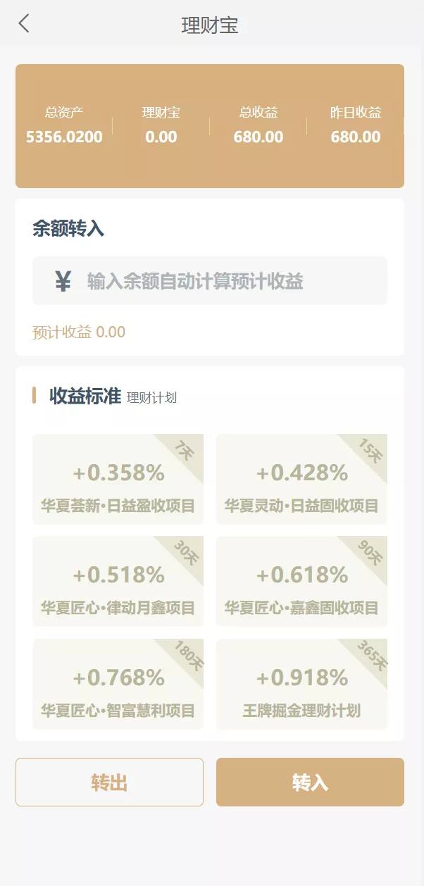 3.添加理财功能,可以将彩票盘资金一键转移到理财投资盘,无需重新注册,用户数据和输入余额一同转入,方便直接使用。