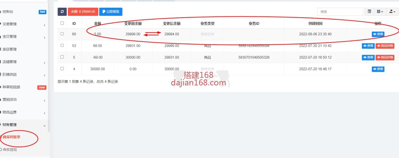 1.商户里面的商品价格是多少 点击发货就扣除余额里的钱 如果没有钱或者不够扣就提示余额不足不能发货,退货不管。